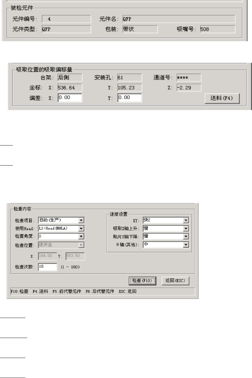 确认速度时出现下列对话框,显示正在确认速度的元件内容及吸取位置。逐项地实时显示运