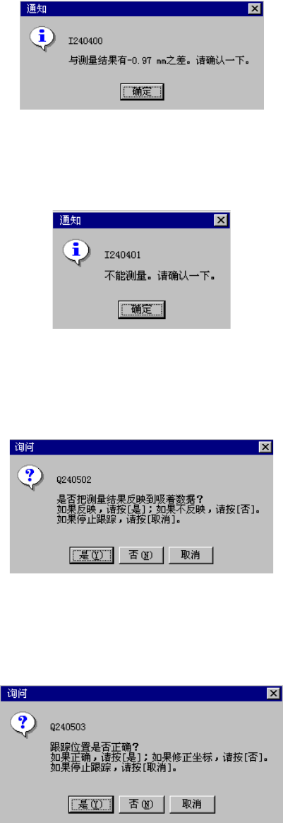 自动示教时,会出现下列 5 种错误/询问。