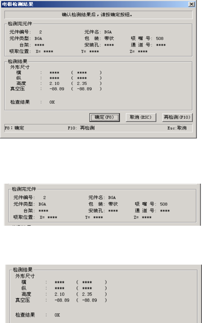 按下确定后,检测结果为有效,并将其数值存入元件数据。然后,返回原单独检测条件设定画面。