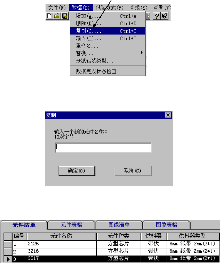 ① 选择要复制的元件名后,单击“数据”/“复制”。