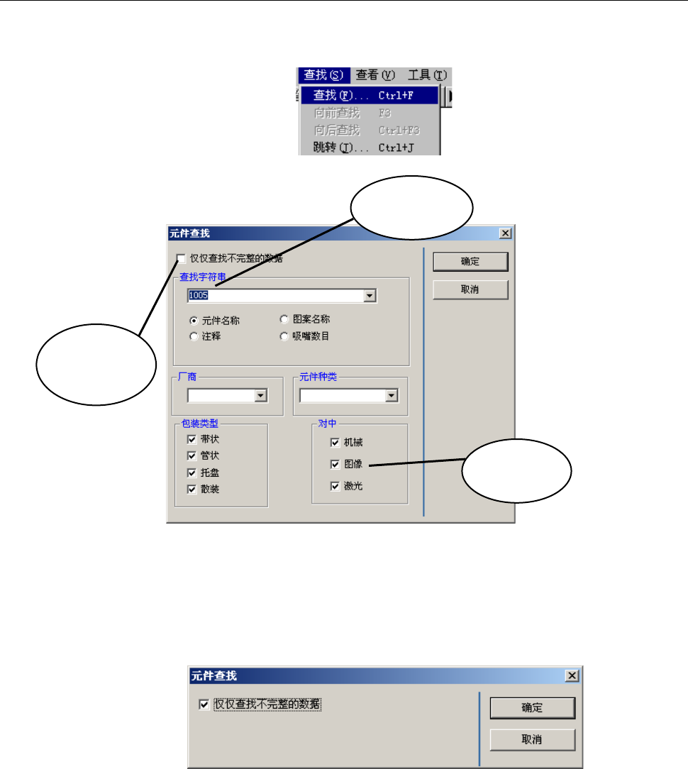 4) 查找未完成的元件数据时,请单击“仅仅查找不完整的数据”。显示如下画面后,再单击“确