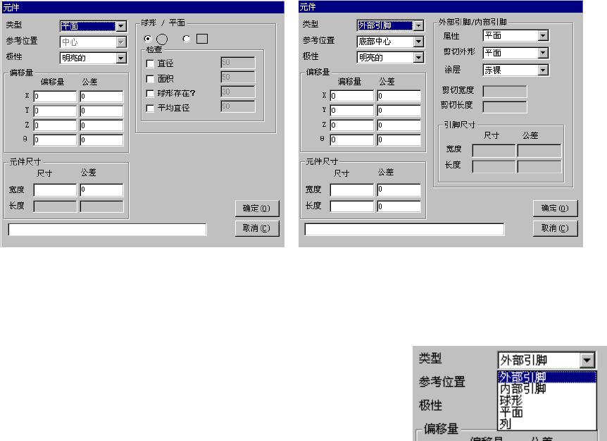 选择了球或平面时的画面 选择了外部引脚或内部引脚时的画面