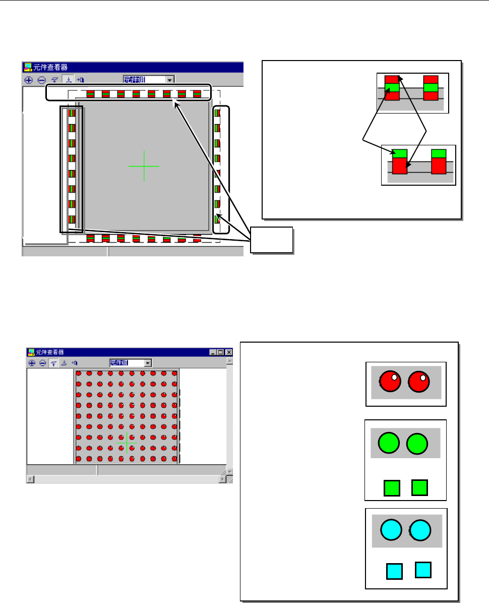 第 2 部 功能详解篇 第 6 章 通用图像 6- 15 ◇球: 为了在红色圆形 ( 涂色 ) 中表现出立体感,在右 上部标有白 色的点。 ◇平面: 用绿色的圆形或正方形 来表示 。 ◇列: 用淡蓝色的圆形或正方 形来表示。 6-3-4 按元件类型区分“元件查看器”画面例 1) 外部引脚、内部 引脚 图 6-3-4- 1 外部引脚元件画面 显示例 2) 球、平面、列 球、平面、列采 用各不相同的颜 色显示。 图 6-3-4- 2 球元件…