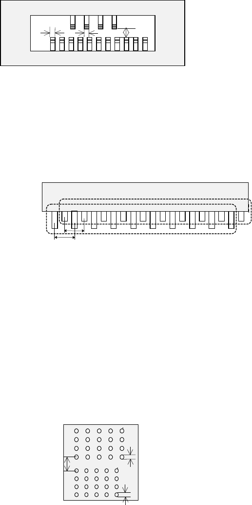 · 在引脚的长度方向上有其他引脚组的情况下,必须定位在离开 1 个引脚宽度,且相隔 1mm 以上的
