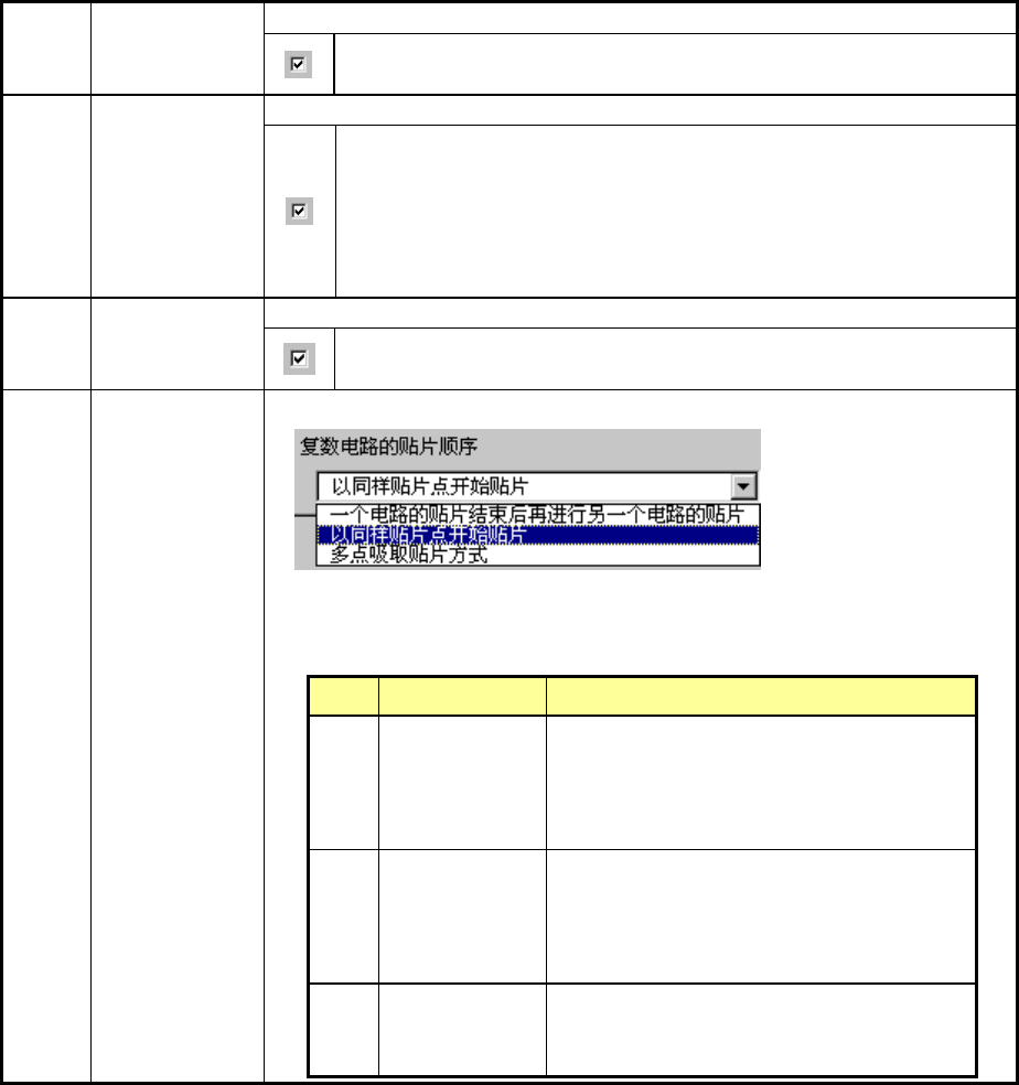 表 7-2-3-2 多电路的贴片顺序的选项及概要
