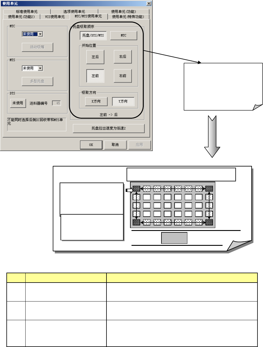 · 装置单元有两类,从中选择一类,再指定托盘的吸取顺序。