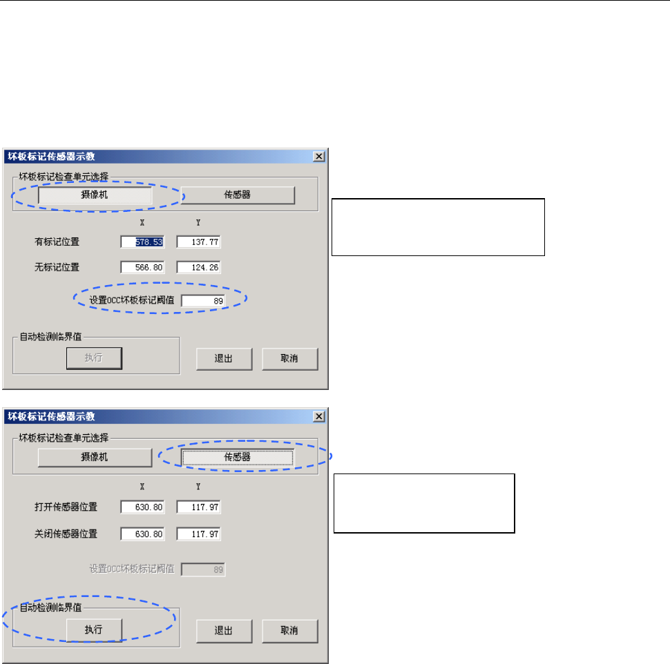 把光标对准设置 OCC 坏板标记阈值的编辑框,按下 HOD 的 CAMERA 键开始示教。
