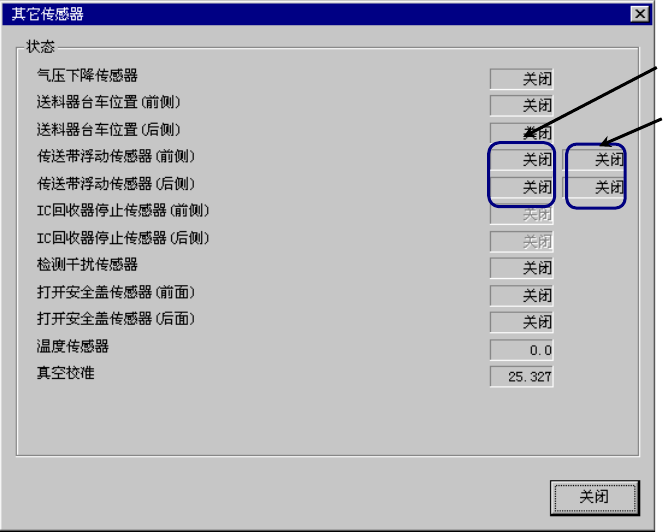 第 2 部 功能详细编 第 9 章 手动控制 9- 44 9-4-5-6 其它传感器 从菜单栏中选择 “控制” / “其他” / “其 他传感器” ,则显示如下的 其它传感器画面 。 图 9-4-5-6-1 其他传 感器 (1) 状态显示 显示各传感器的 状态。 不影响机器 设置的“使用 单元”中的设置 。 ( 也显示不使 用的单元状态 ) 传感器显示连续 读入的状态,并 实时显示。 前 后