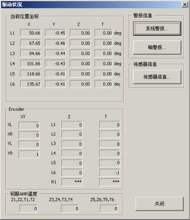 各轴的马达端检测器(Encoder)或机械端检测器(线性位移传感器)可显示现在位置。