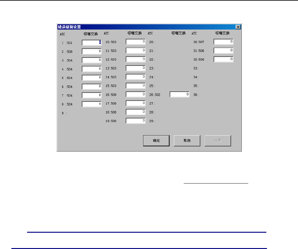 从菜单栏中选择“工具”/“错误级别设置”/“各吸嘴”,则显示图10-3-4-1。