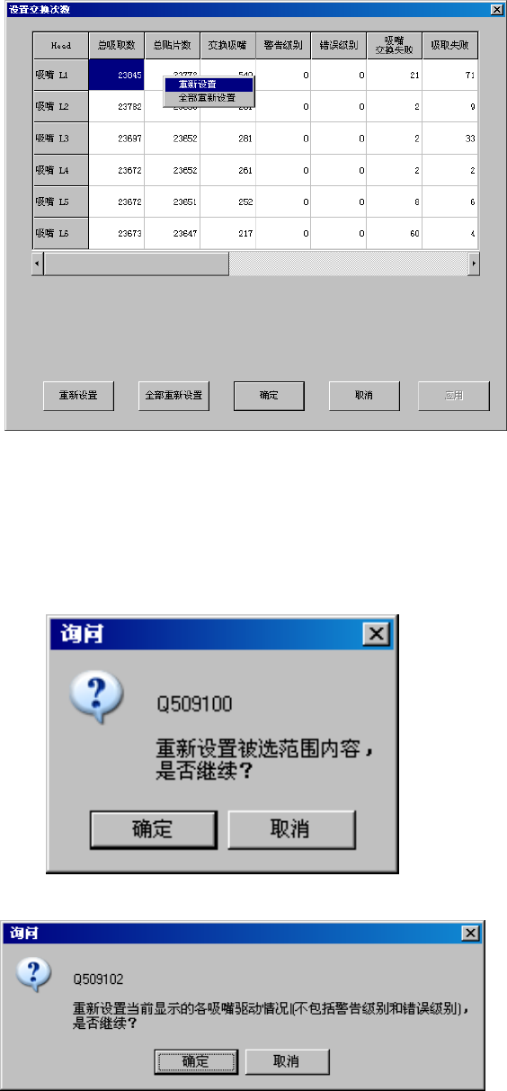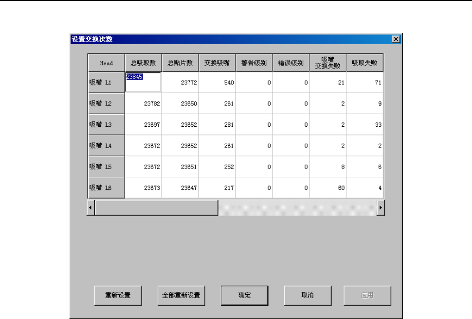 更换贴片头吸嘴时,将已更换的贴片头吸嘴的更换次数设置为“0”,则可进行初始化。