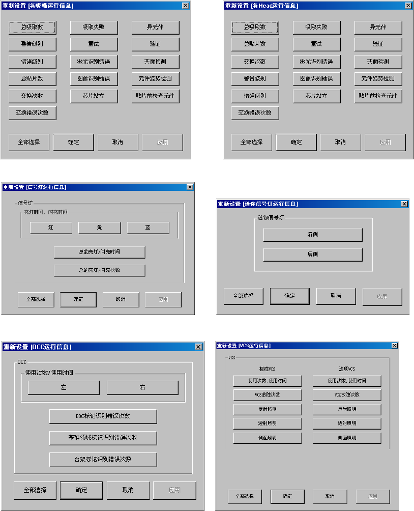 图 10-5-17-7 重新设置各吸嘴运行信息画面 图 10-5-17-8 重新设置各 Head 运行信息画面