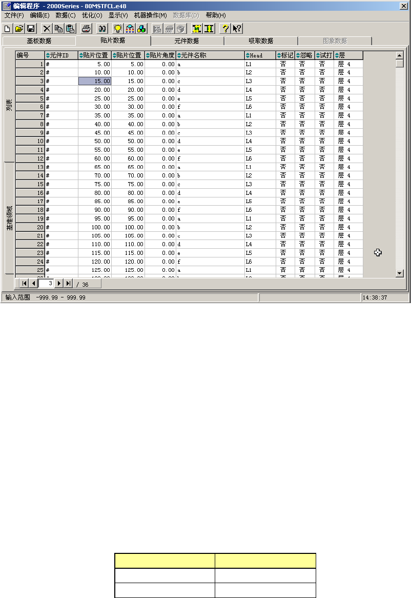 图 1-3-3-14 程序编辑画面(贴片数据)