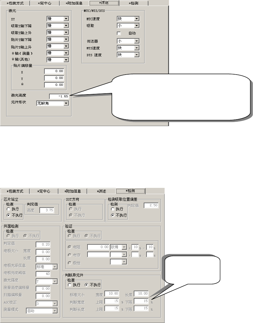 通常吸嘴的“激光高度”中应输入从元件表面到激光投射面的距离,而夹持吸嘴则应以固定