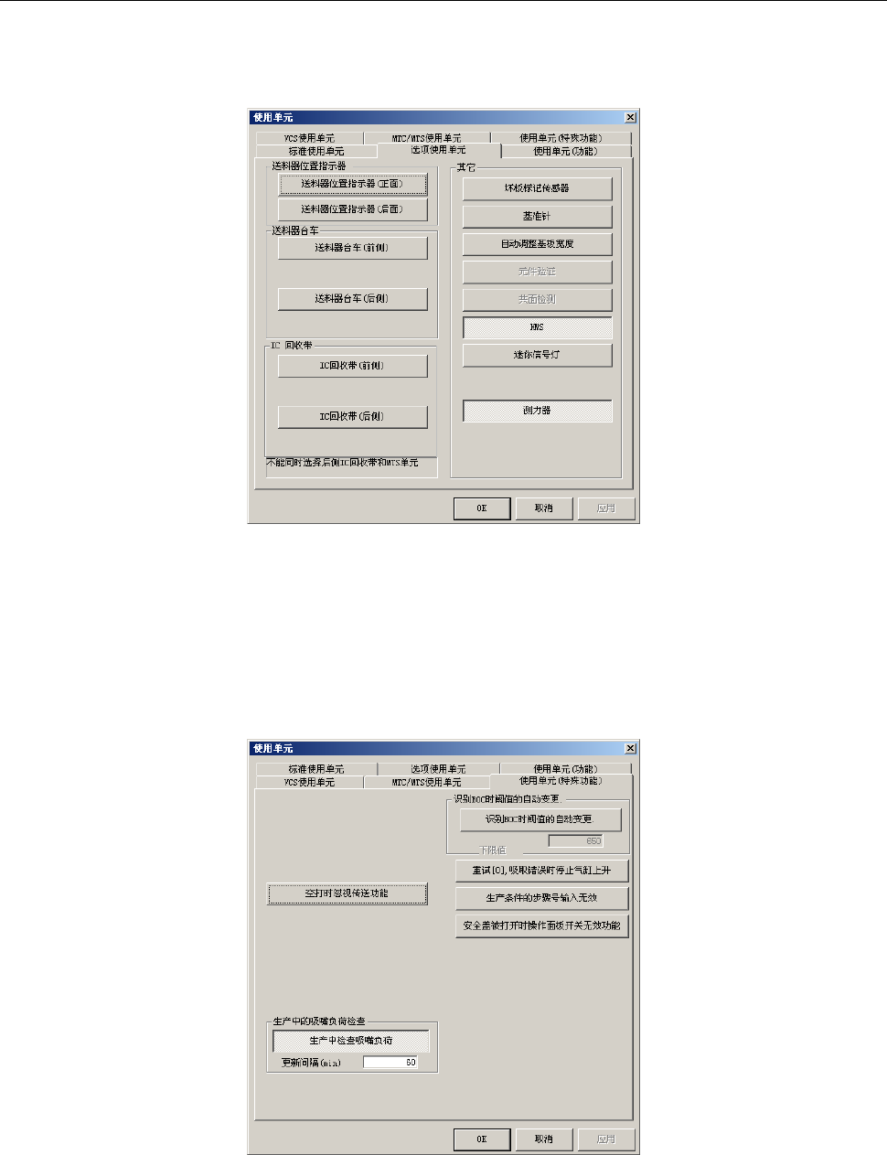 选择设置的[设置组]-[使用单元]中的[使用单元(特殊功能)],使[生产中检查吸嘴负荷]选项有