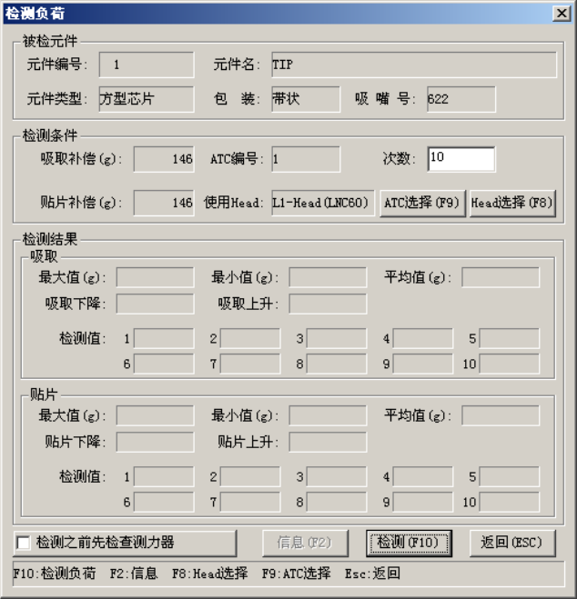 用元件数据中设置的值,不吸取元件,而是在测力器上进行吸取和贴片操作,以确认操作时的负荷。