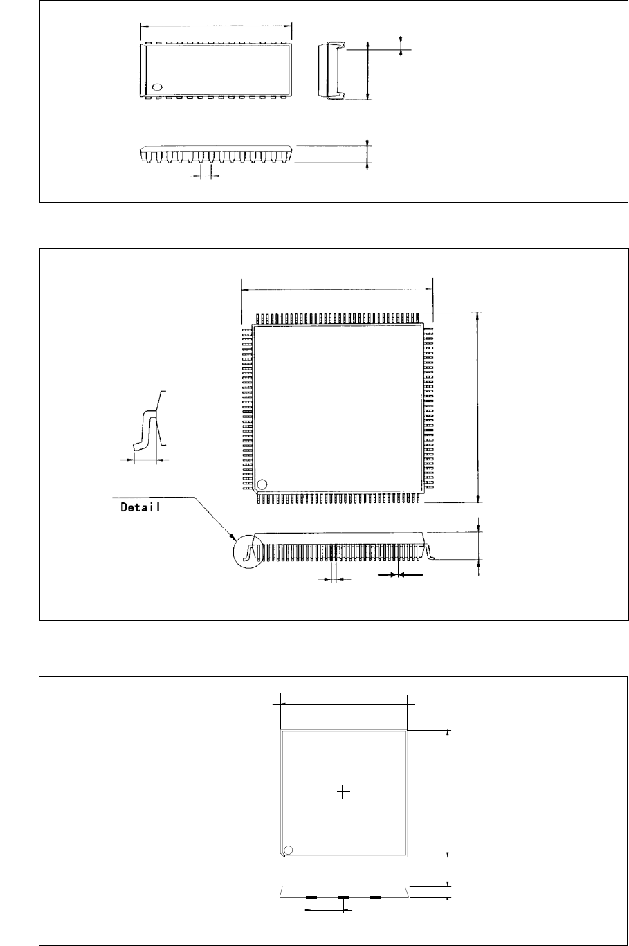 第 2 部 功能详细篇 第 13 章 程序补充 13 -4 · QFJ(PLCC) · BQFP(PQFP) 外形尺寸 横 外形尺寸 纵 元件高度 引脚宽度 引脚宽度间距 外形尺寸 横 外形尺寸 纵 元件高度 引脚高度 引脚宽度间距 引脚高度