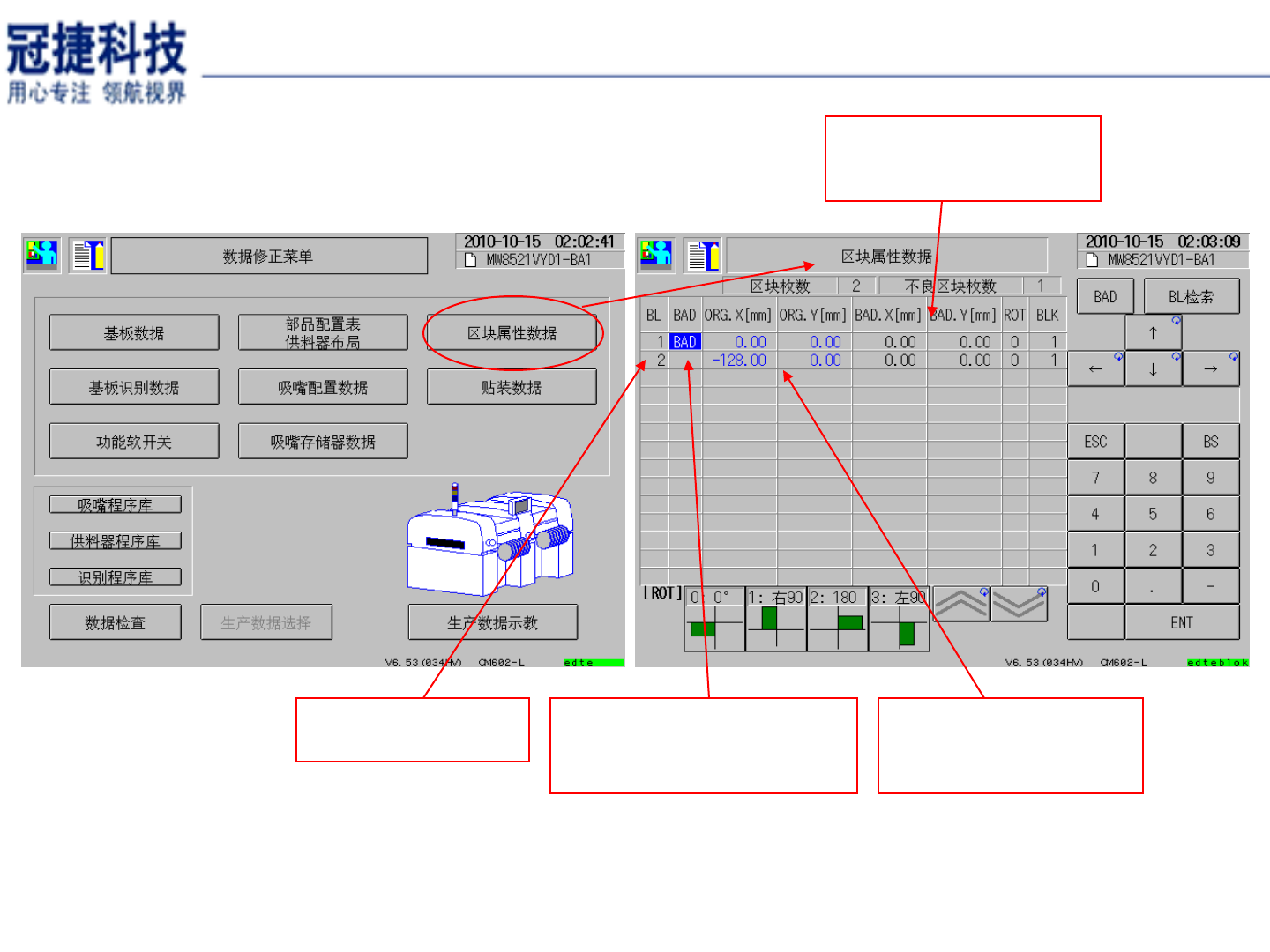 工作台序号 表示该工作台供料器数 量及被跳跃供料器数量 , 算两站供料器 . 站别以及双通道 料枪的左 / 右通道 . 元件料号 W12 表示料枪宽 12mm, F08 表示一次进料 8mm. 表示元件来料角度 , 请勿随意修改 表示来料包装是 纸带还是塑带 . RTY 表示 连续吸着或 识别错误几次后报警 , CHIP 类元件一般选 3, 其余一般选 1 跳跃表示该站料是 否生产 , 在切换 生产 前要检查是否有跳 料 , 以免造成漏…