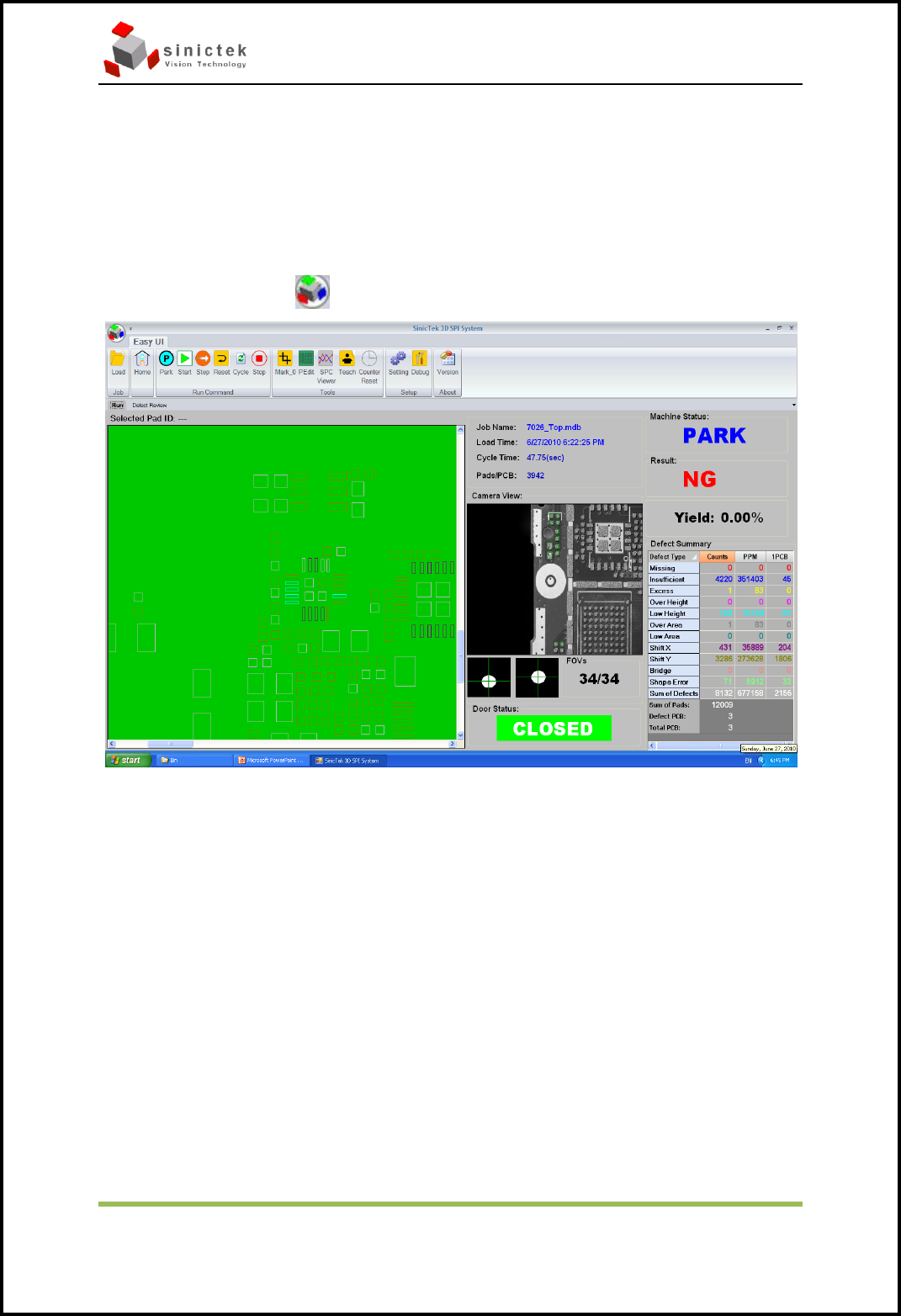 4.3.7 待检测结束后,主界面将自动由 RUN 界面转换到 Defect Review