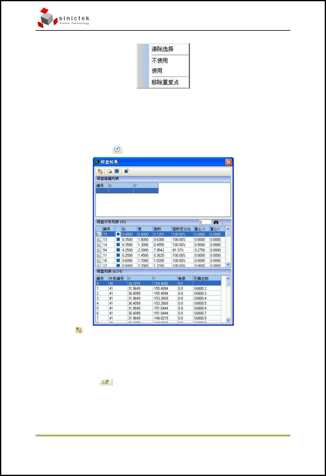 InSPIr e-510a 操作手册 思泰克光电科 技有限公 司 P age 14 Copyrigh t by Sinic-T ek Vision T echnology Co., Lt d. 选择而需要的坐标系进行程序输出,输出为 .mdb 文件。 输出:输出 SPI 程序。 退出:退出 SPI 程序。 6.3 编程软件 PE ditor 6.3.1 软件概述: Peditor 软件的功能是对焊盘检测前的参数进行设置; 所需设定的内容…