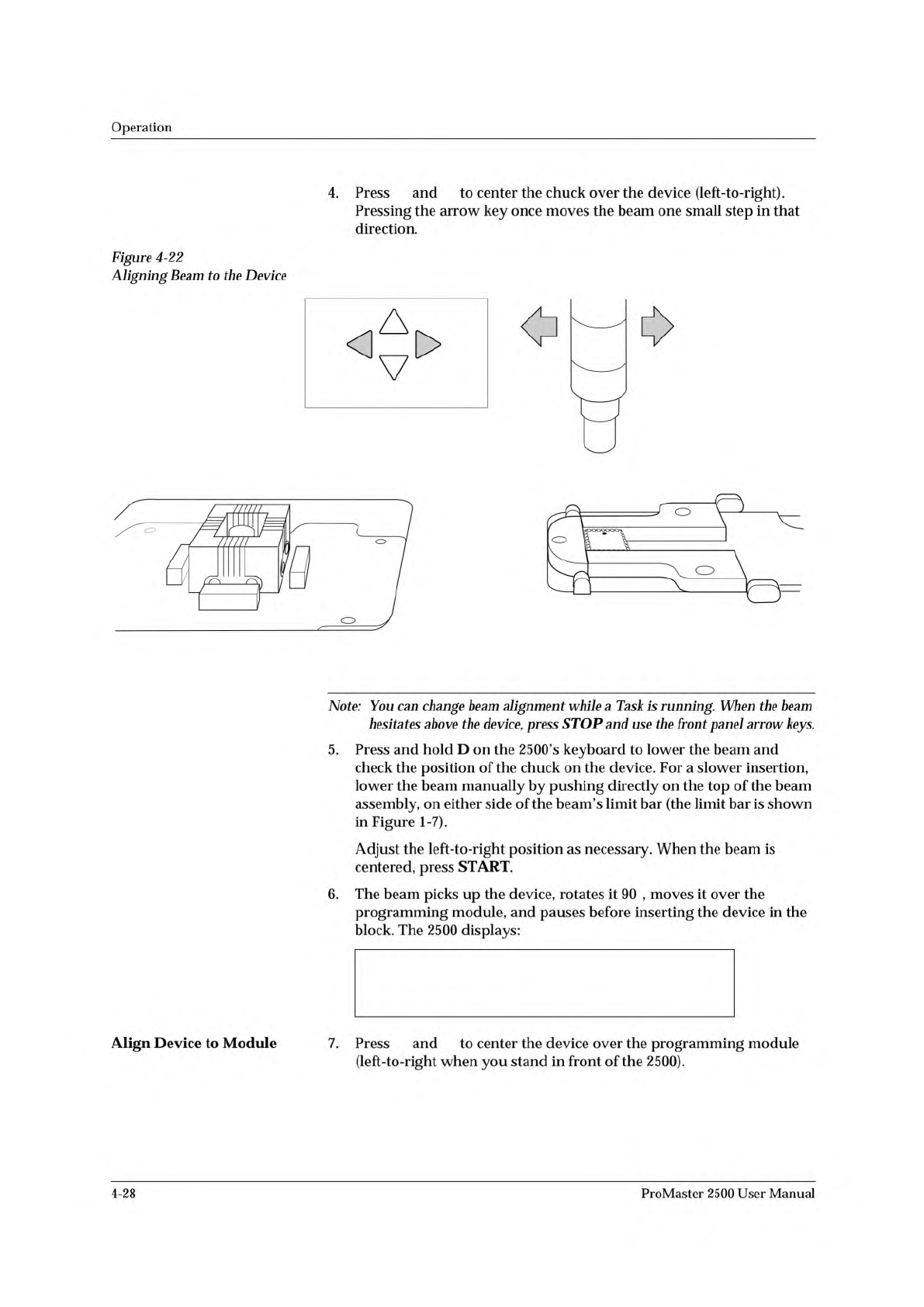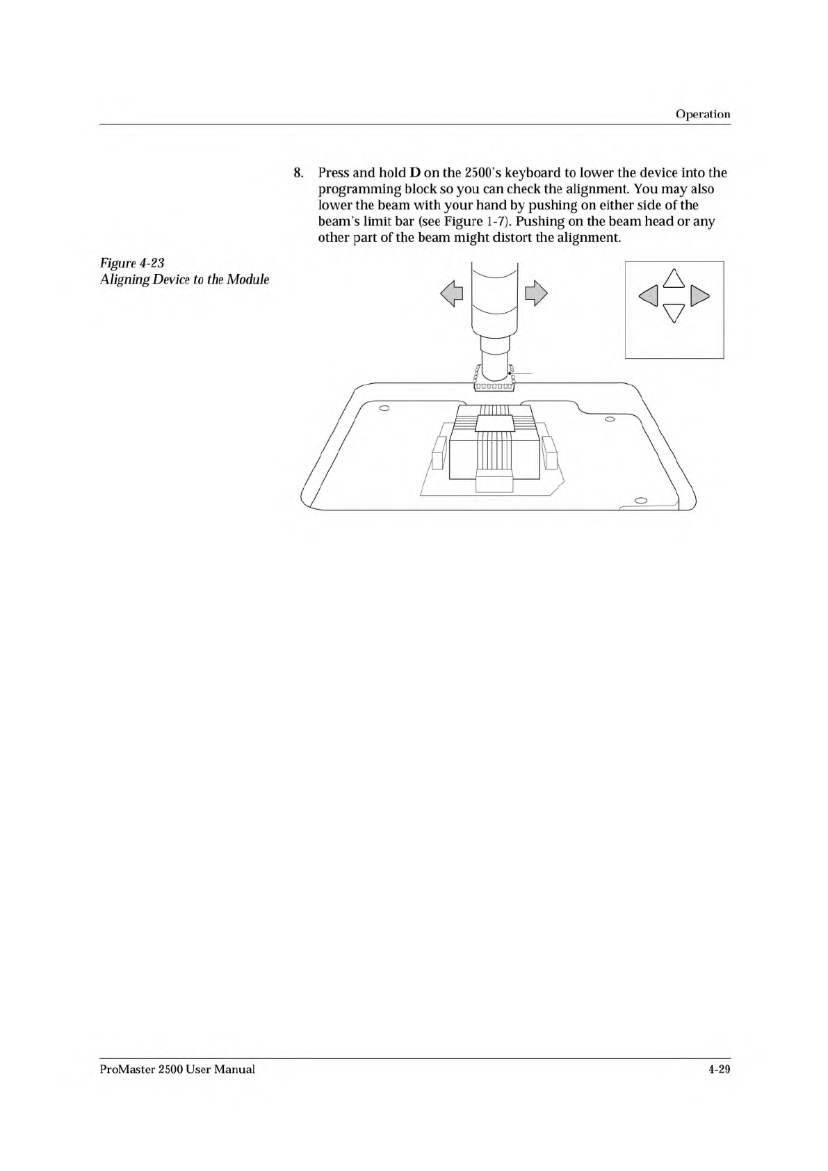 PIN 1 1858-1 FRONT PANEL ARROW KEYS X2 X4 3 X Operation 8. Press and hold D on the 2500's keyboard to lower the device into the programming block so you can check the alignment. You may also lower the beam with your…