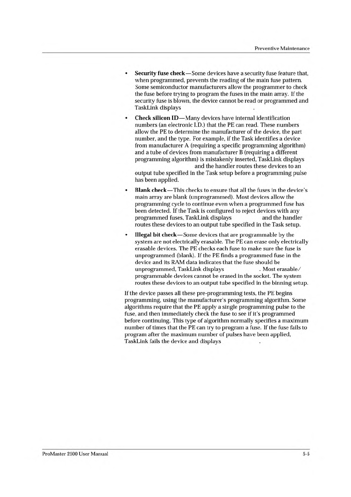VERIFY FAIL, PASS1 VERIFY FA IL, PASS 2 CATEGORY X BI N NOT AVAILABLE Preventive Maintenance If the device programs without errors, the PE goes to a verify cycle. Most semiconductor manufacturers specify setting the devi…