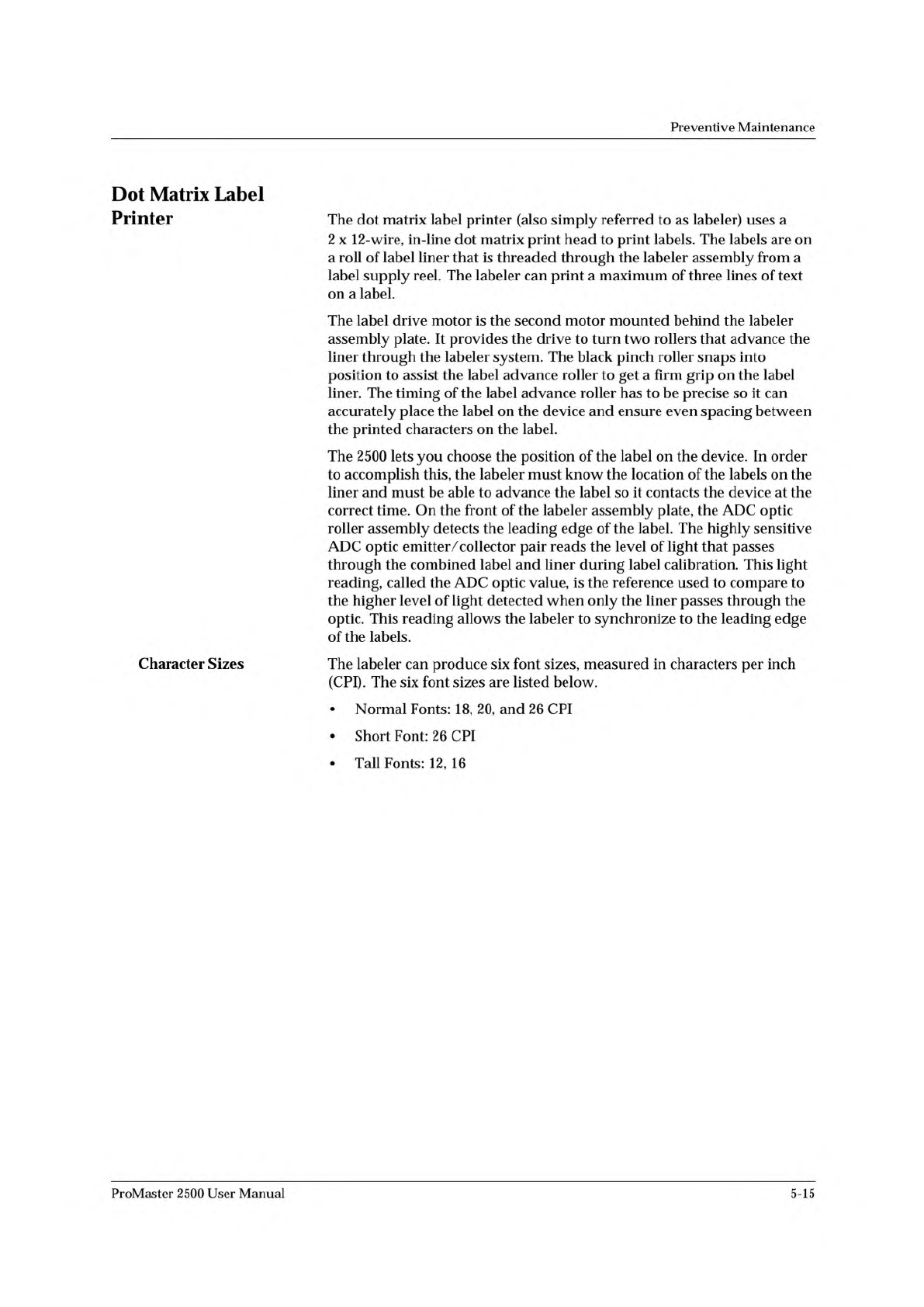 Preventive Maintenance Dot Matrix Label Printer The dot matrix label printer (also simply referred to as labeler) uses a 2 x 12-wire, in-line dot matrix print head to print labels. The labels are on a roll of label liner…