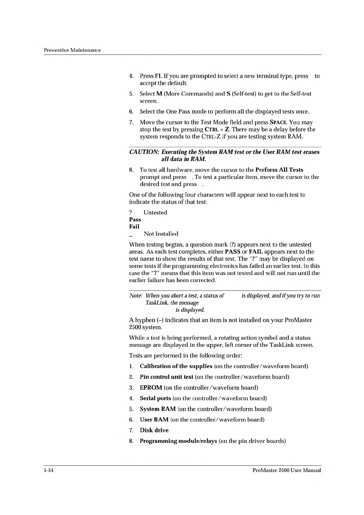 ↵ ↵ ↵ ???? Programmi ng hardware has not passed self test Preventive Maintenance 4. Press Fl. If you are prompted to select a new terminal type, press to accept the default. 5. Select M (More Commands) and S (Self-test) …