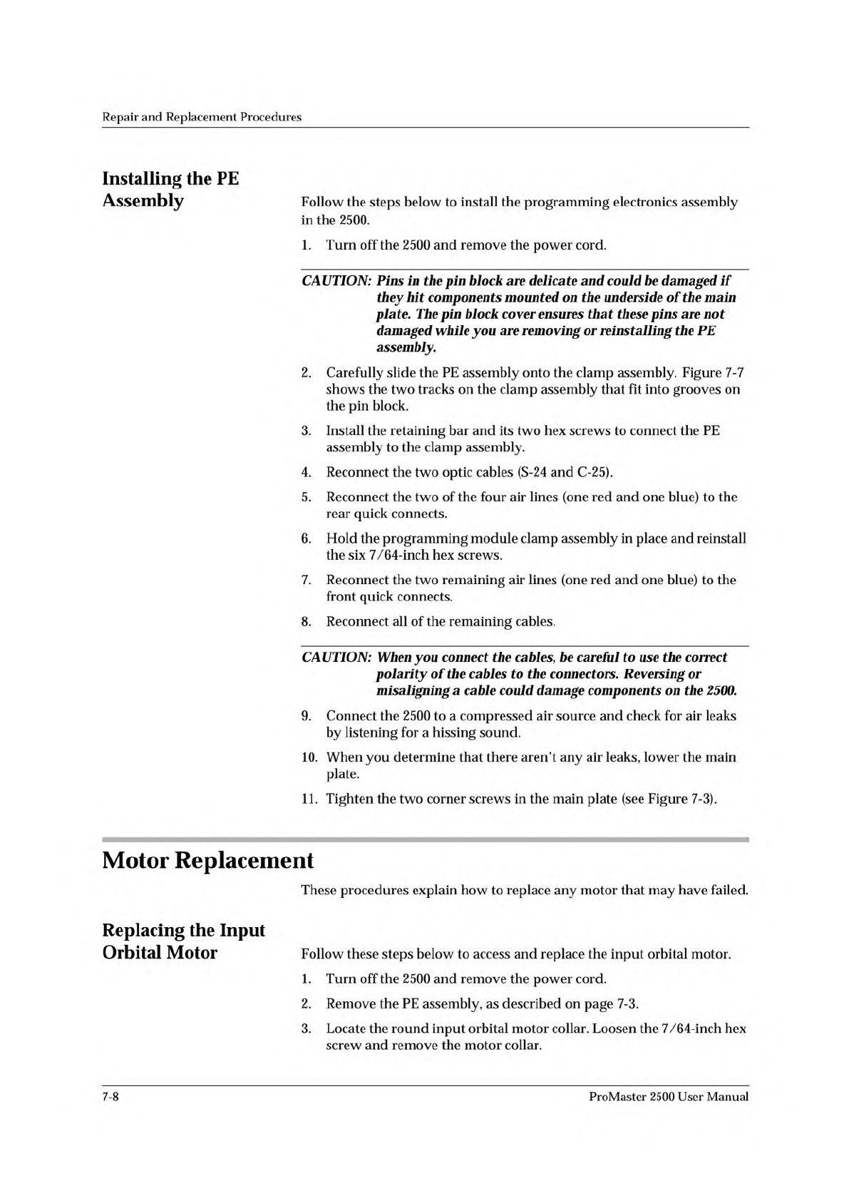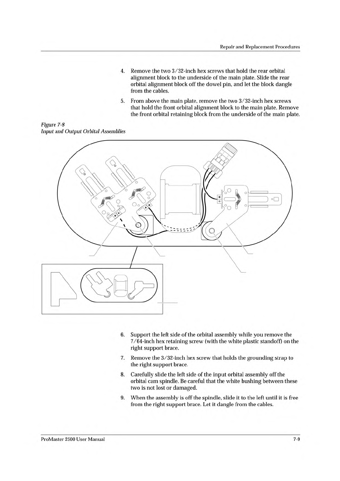 2307-1 INPUT ORBITAL ASSEMBLY OUTPUT ORBITAL ASSEMBLY MAIN PLATE (Underside) CAM SPINDLE CAM SPINDLE Repair and Replacement Procedures 4. Remove the two 3/32-inch hex screws that hold the rear orbital alignment block to …