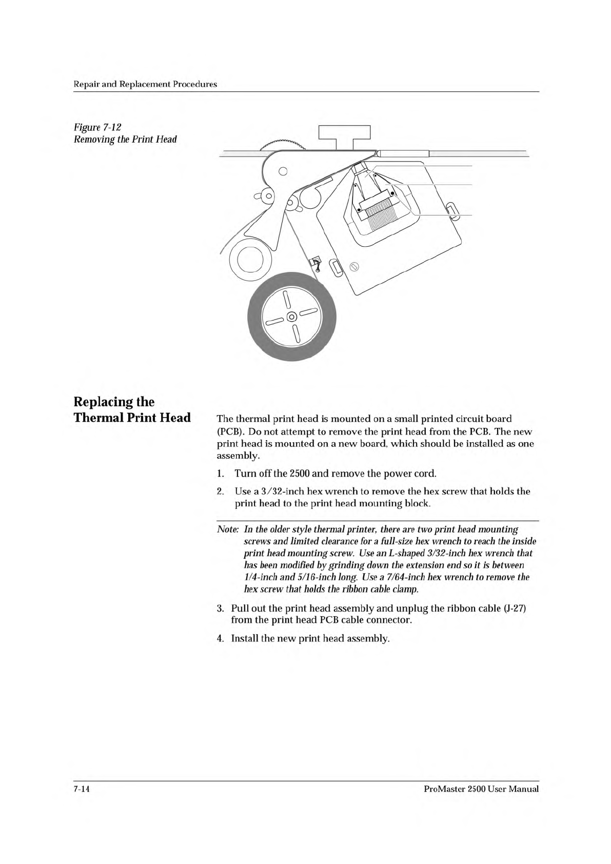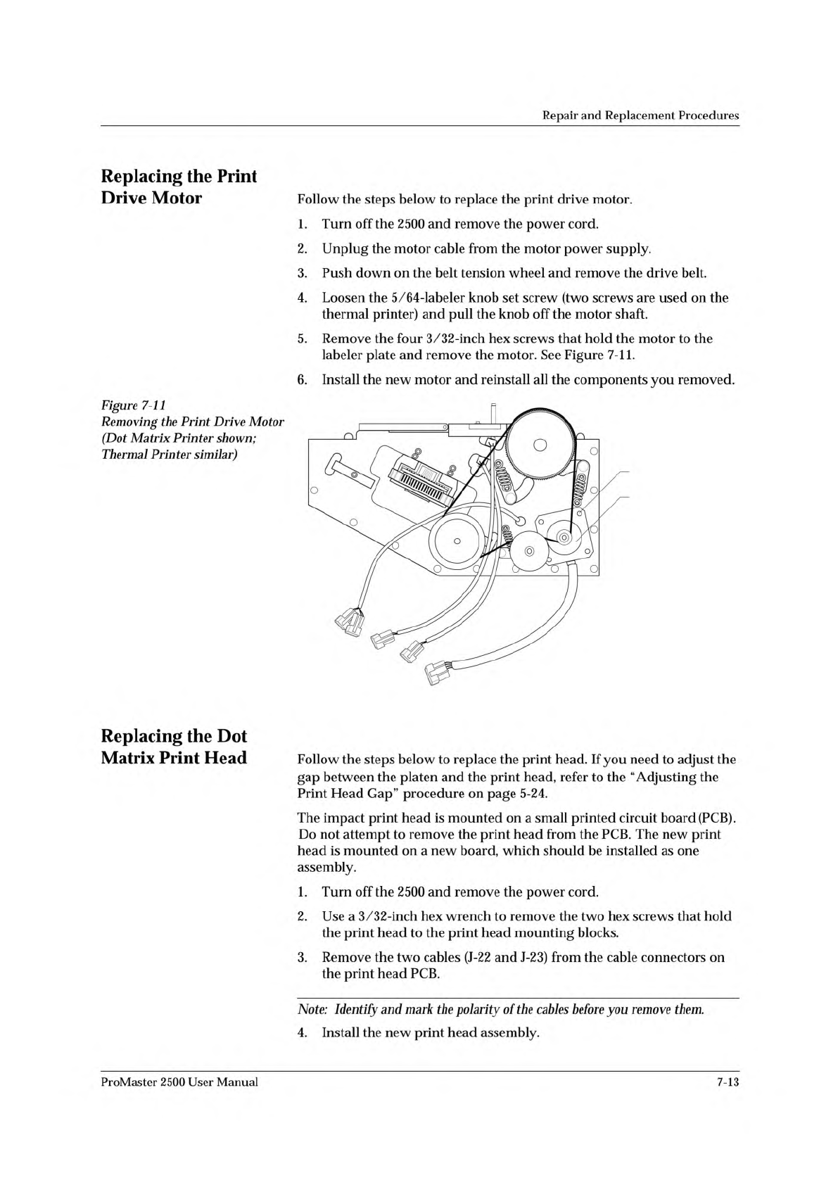 2310-1 PRINT DRIVE MOTOR SCREW (1 of 4) Repair and Replacement Procedures Replacing the Print Drive Motor Follow the steps below to replace the print drive motor. 1. Turn off the 2500 and remove the power cord. 2. Unplug…