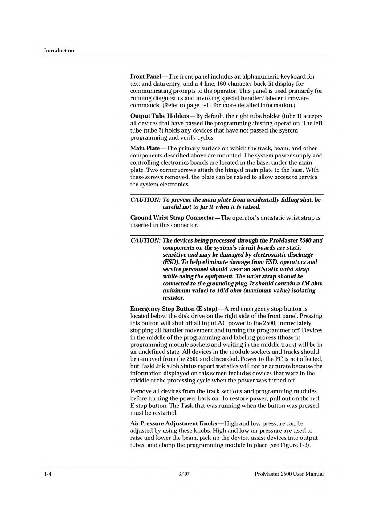 Introduction Front Panel — The front panel includes an alphanumeric keyboard for text and data entry, and a 4-line, 160-character back-lit display for communicating prompts to the operator. This panel is used primarily f…