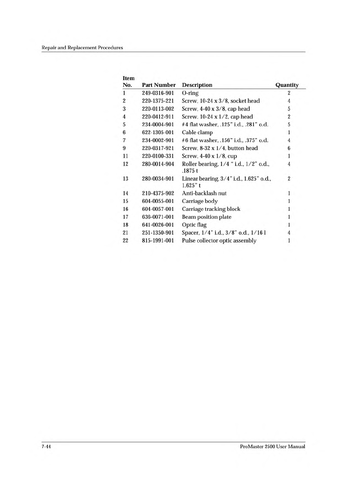 Repair and Replacement Procedures Figure 7-30 Carriage Assembly ProMaster 2500 User Manual 7-43