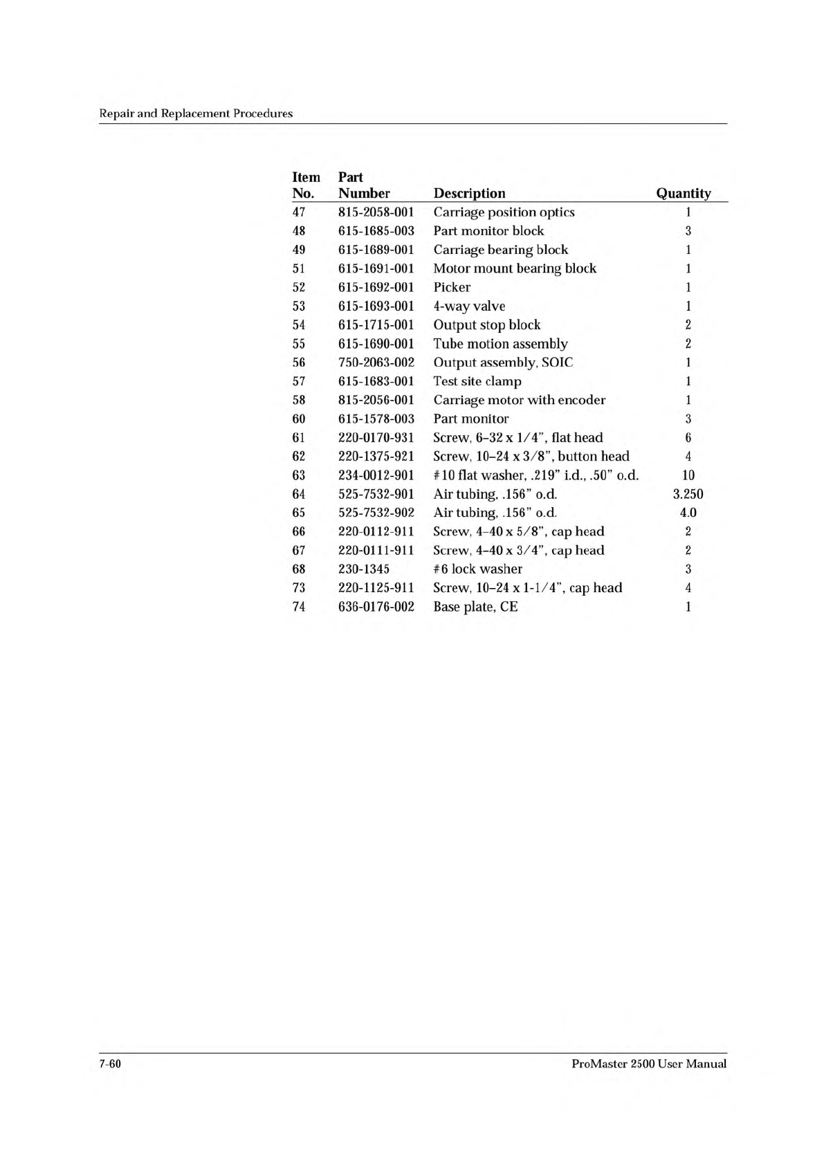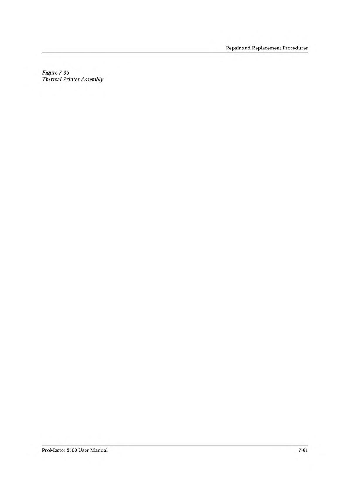 Repair and Replacement Procedures Figure 7-35 Thermal Printer Assembly ProMaster 2500 User Manual 7-61