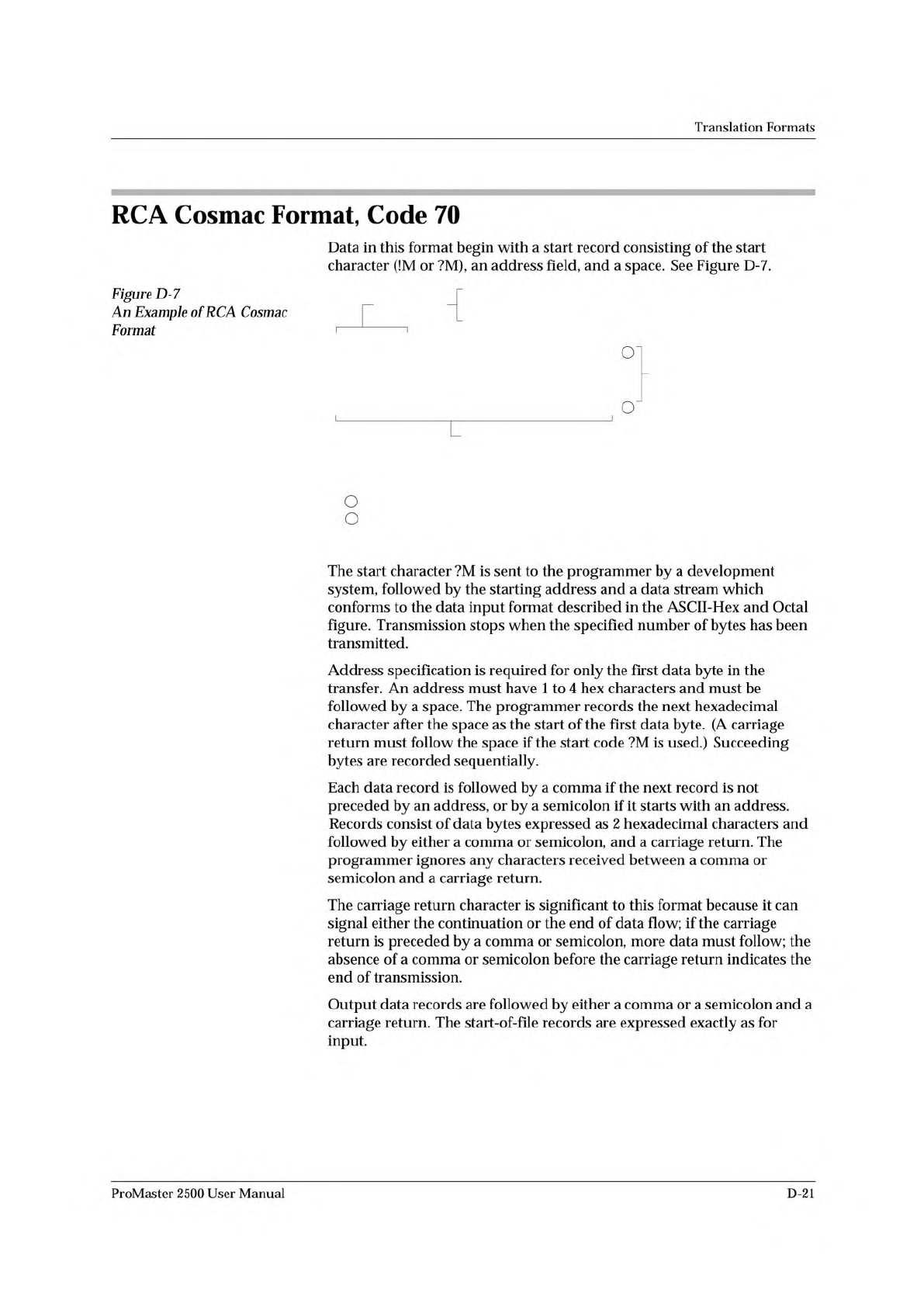 Translation Formats Although each data byte has an address, most are implied. Data bytes are addressed sequentially unless an explicit address is included in the data stream. This address is preceded by a $ and an A, mus…