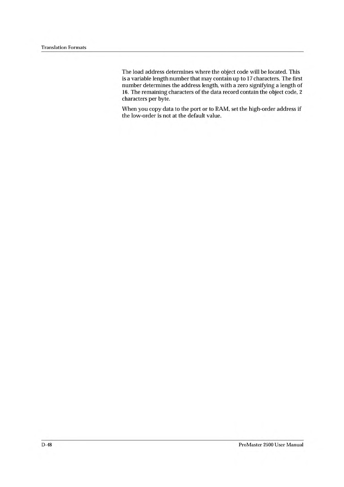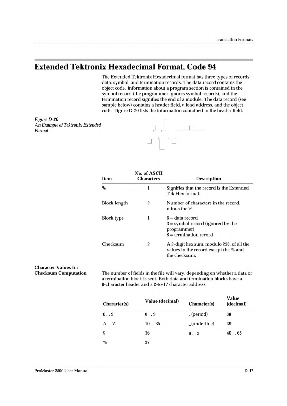 %1561C310020202020202 SUMCHECK: 1CH = 1+5+6+3+1+0+0+0+2+0+2+... OBJECT CODE: 6 BYTES LOAD ADDRESS: 100 H BLOCK TYPE: 6 (DATA) HEADER CHARACTER BLOCK LENGTH: 15H = 21 0092-2 Translation Formats J Figure D-20 An Example of…