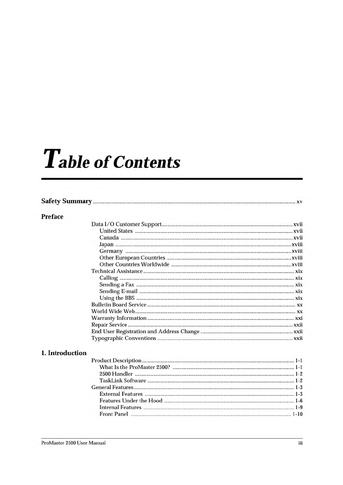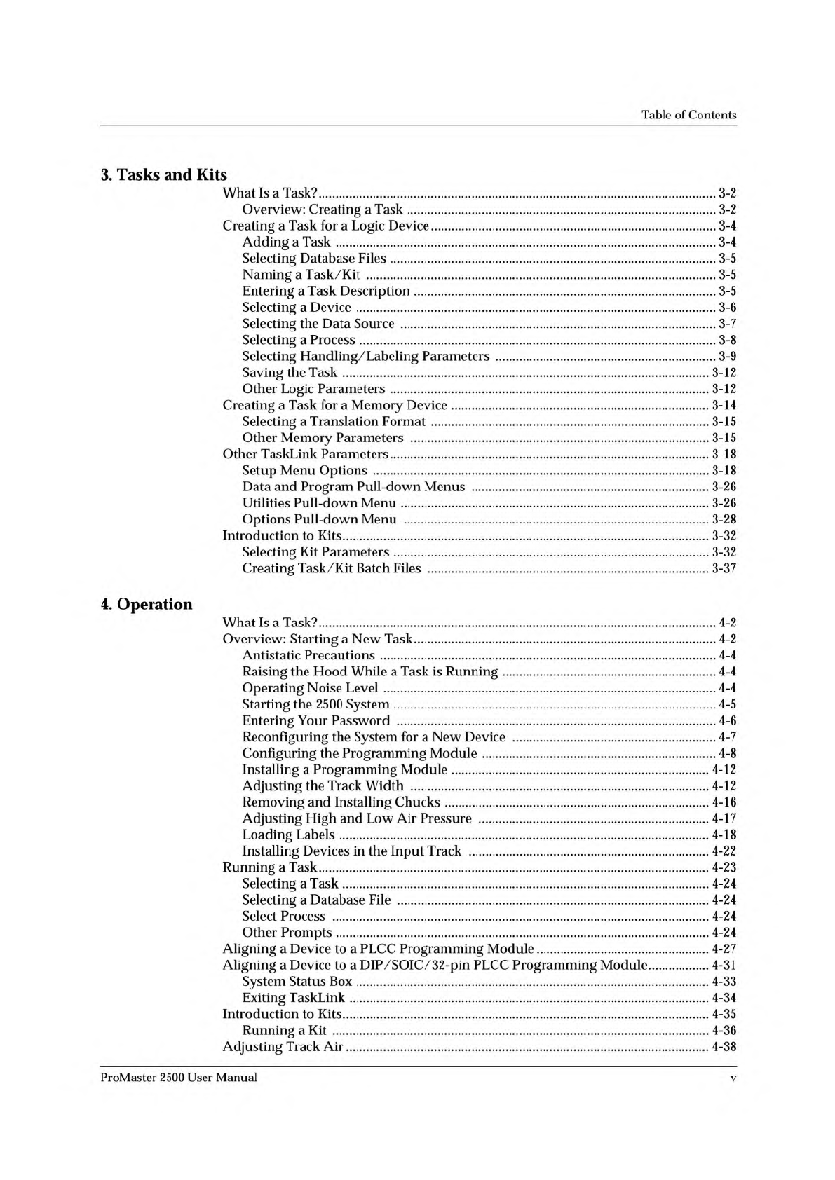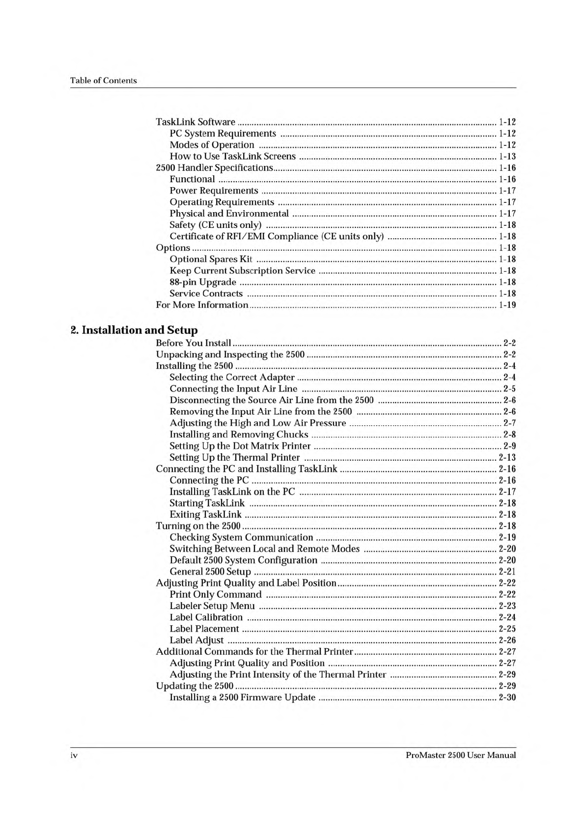 Table of Contents TaskLink Software 1-12 PC System Requirements 1-12 Modes of Operation 1-12 How to Use TaskLink Screens 1-13 2500 Handler Specifications 1-16 Functional 1-16 Power Requirements 1-17 Operating Requirement…