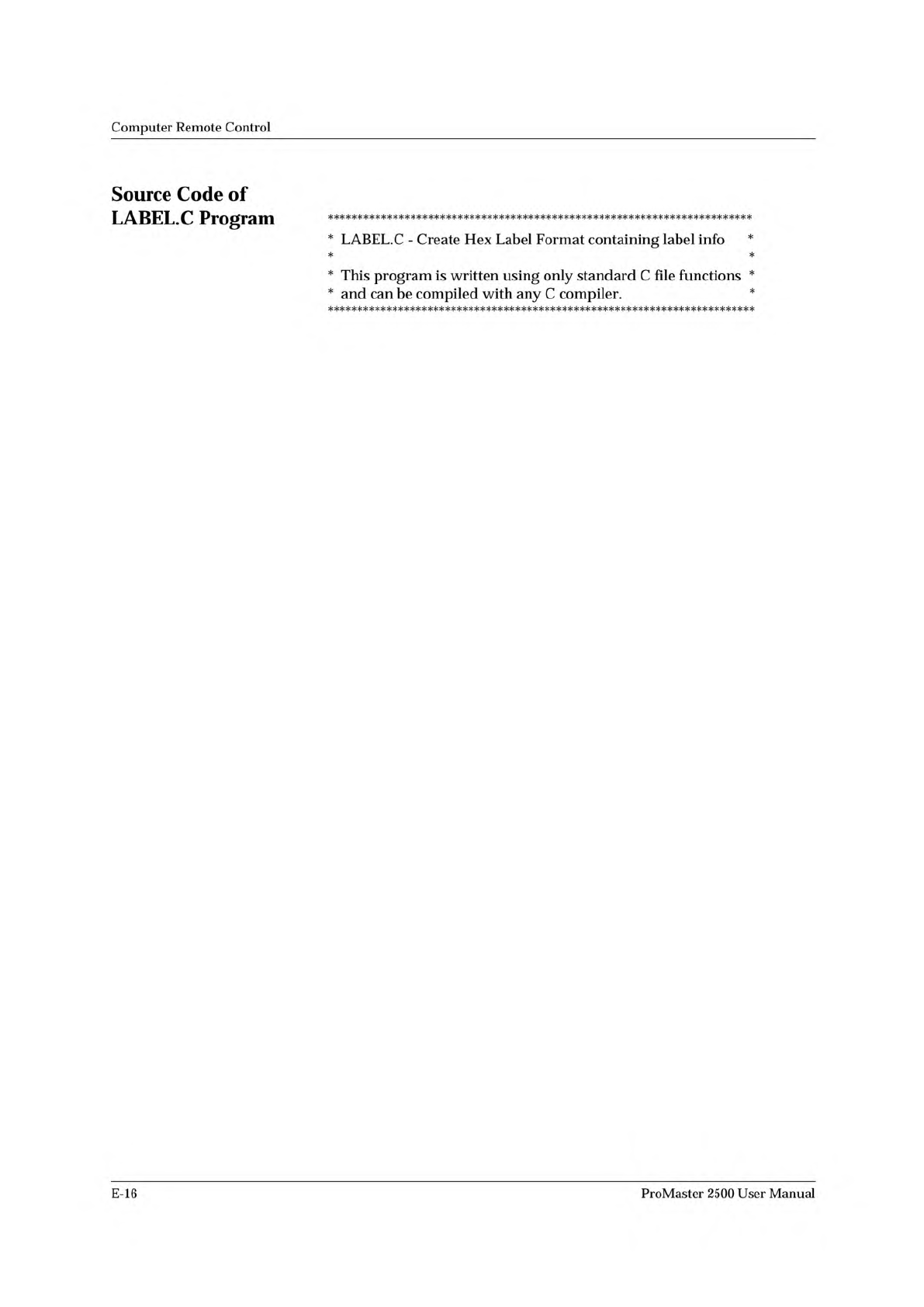 ↵ Computer Remote Control Programming Electronics Computer Remote Control This section describes the CRC commands used for the ProMaster 2500's programming electronics. It includes the following information: • Syste…