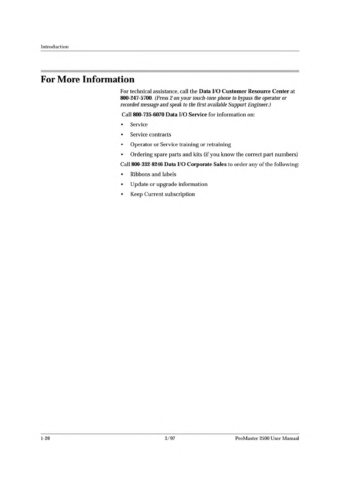 Introduction ProMaster 2500 User Manual 3/97 1-21