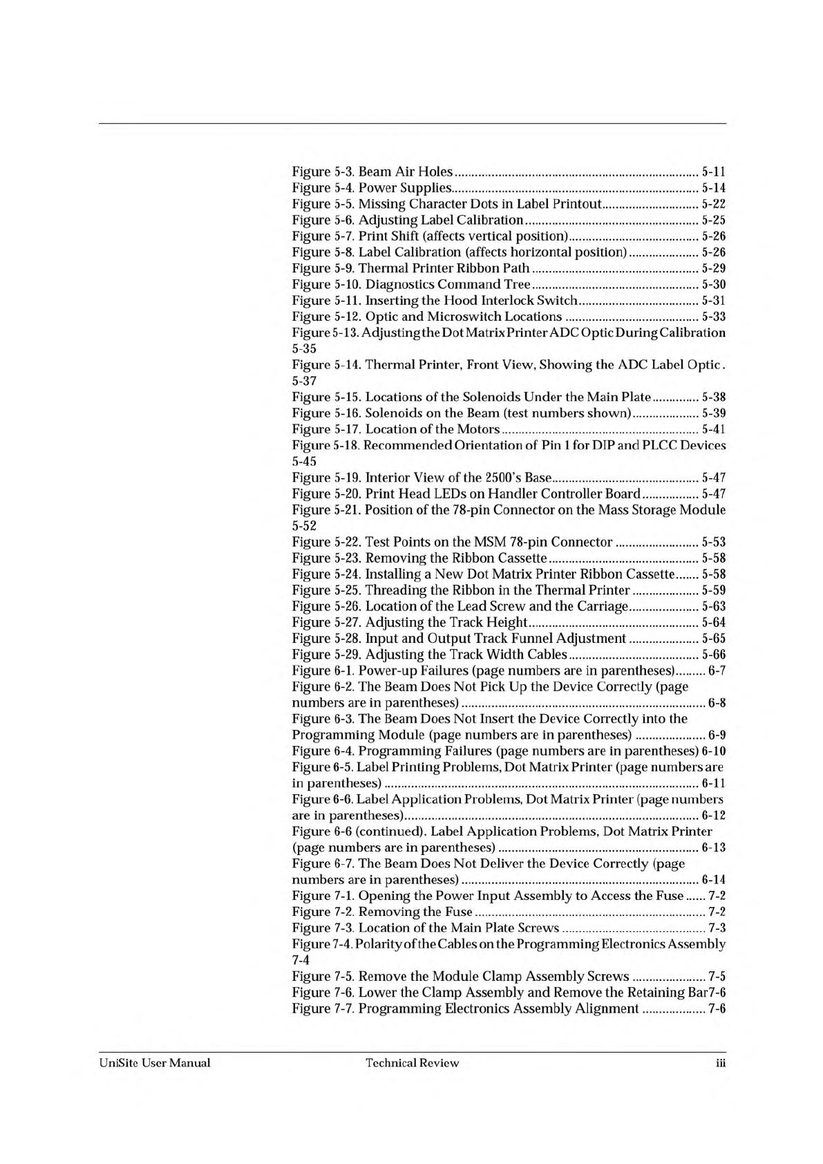 Figure 5-3. Beam Air Holes 5-11 Figure 5-4. Power Supplies 5-14 Figure 5-5. Missing Character Dots in Label Printout 5-22 Figure 5-6. Adjusting Label Calibration 5-25 Figure 5-7. Print Shift (affects vertical position) 5…