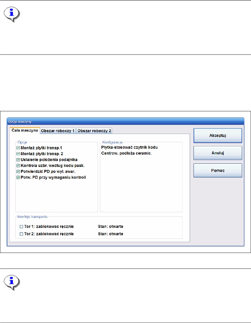 Wyświetlane są tylko opcje maszyny skonfigurowane w aktualnej stacji. 3
