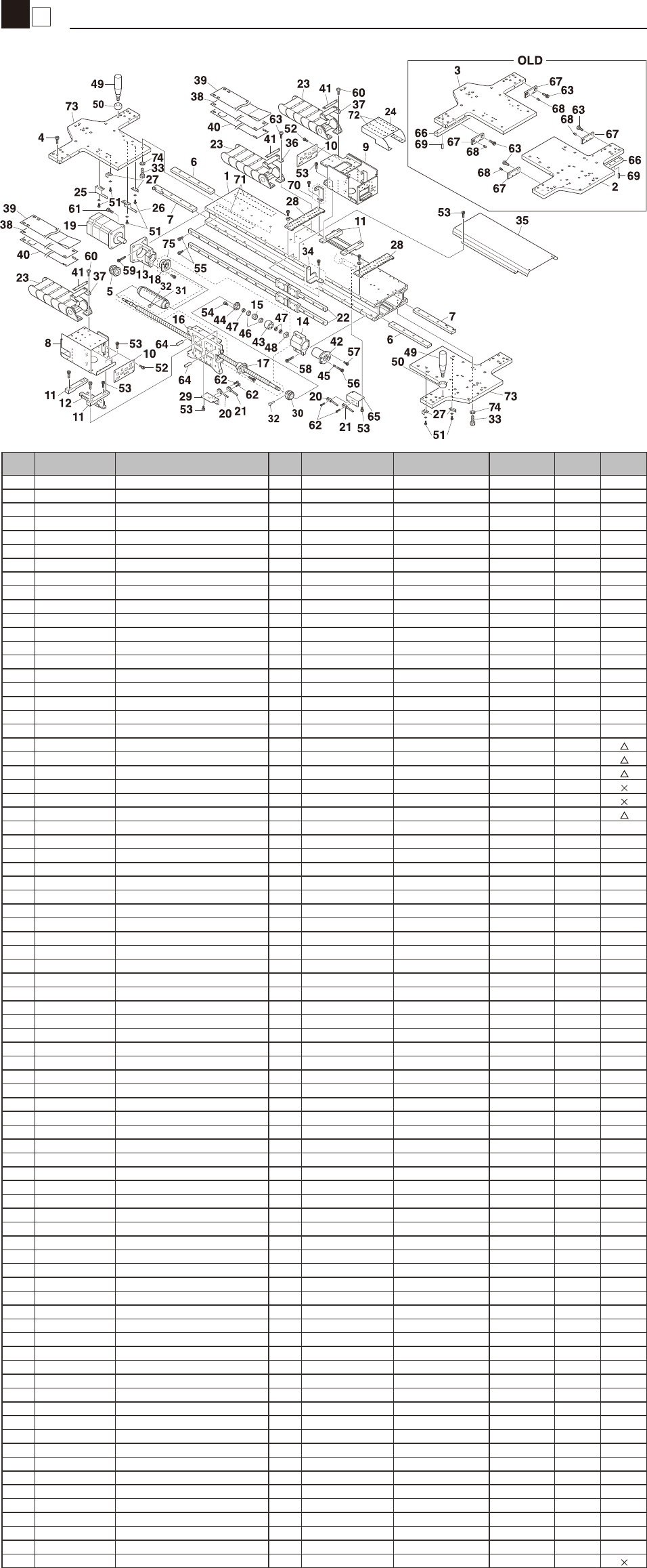 1 4 X-axis 4 Moving-axis KV1-080423 No. Part No. Part Name Q'ty Remarks Date of change Compati. Rank Level 1 KV1-M2211-00X FRAME X AXIS 1 / 2 KV1-M2213-01X PLA TE A,X AXIS 1 (2000/1/20) OK / 3 KV1-M2214-01X PLA TE B…