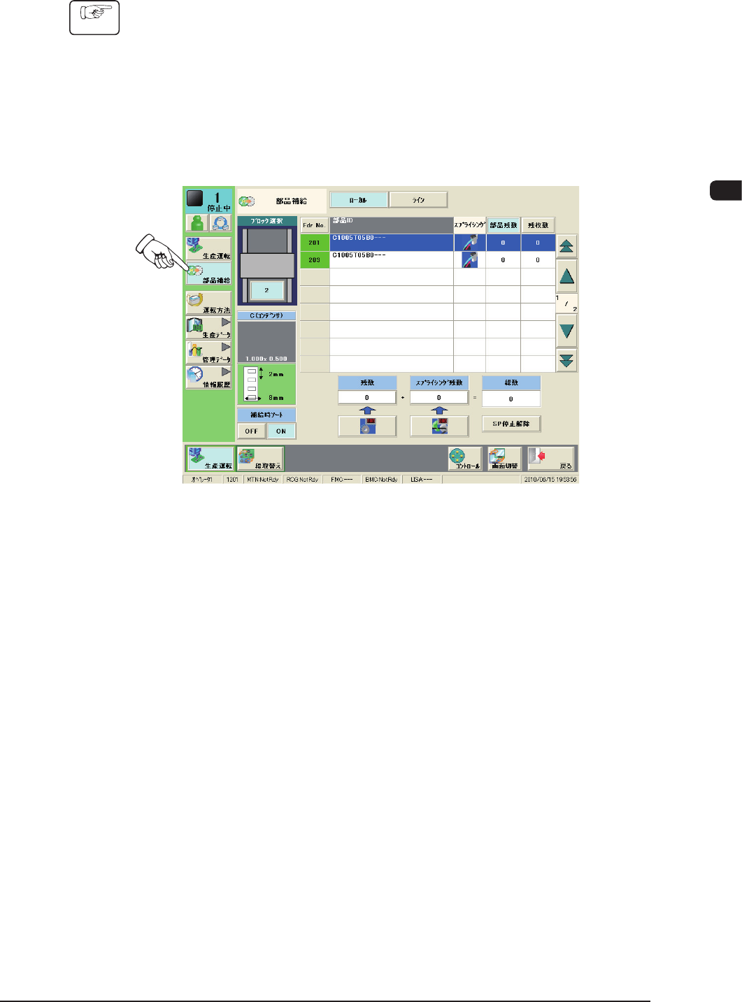 (5)部品補給を行った FdrNo. のボタンを押す。