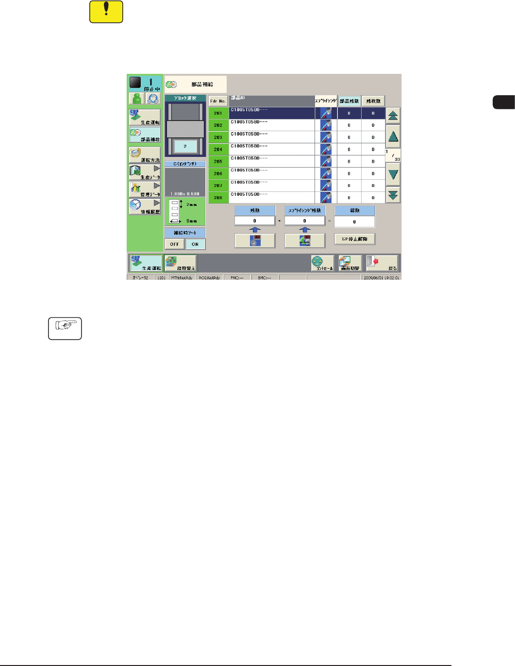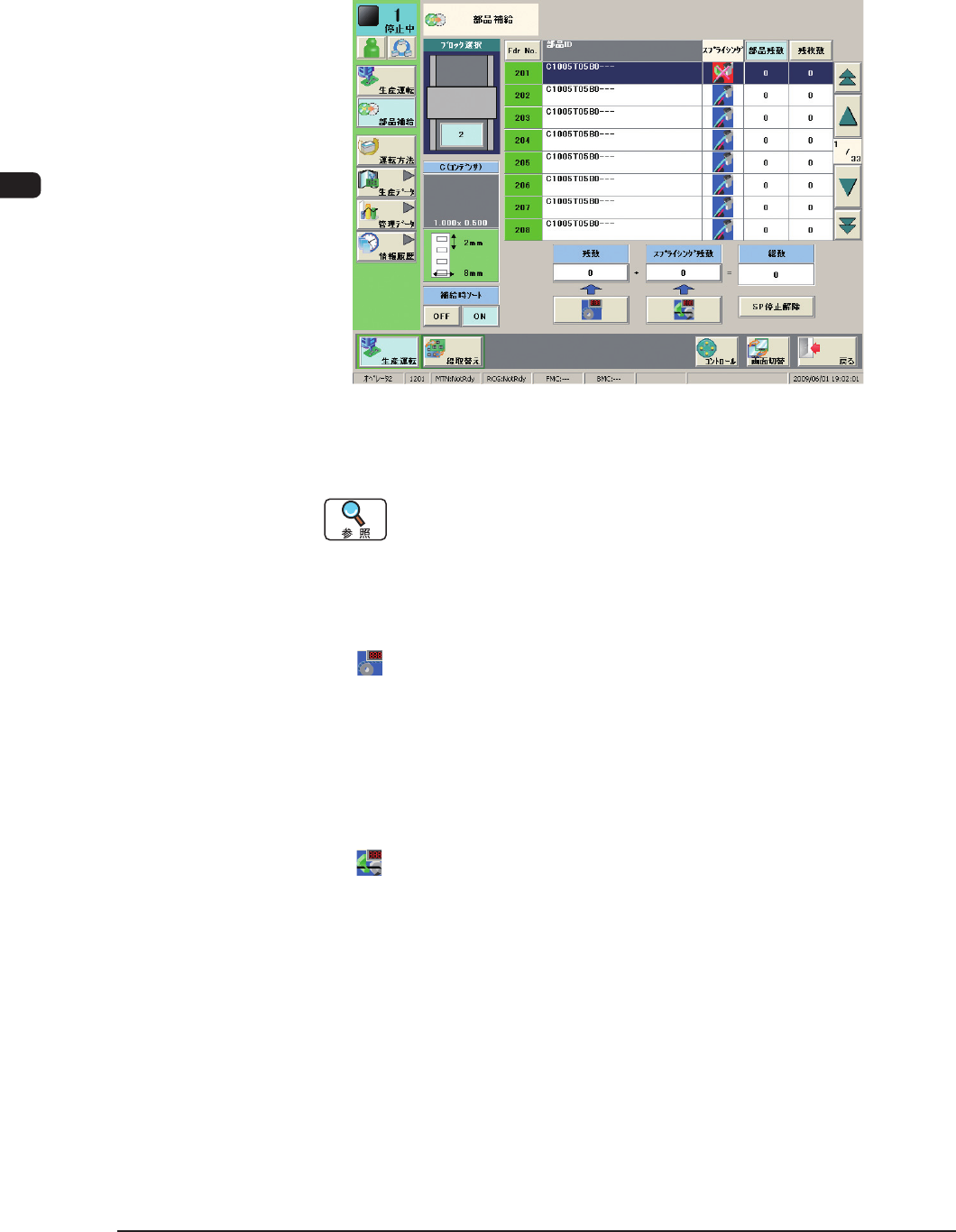 [ 部品補給 ]ボタンを押し、“部品補給”画