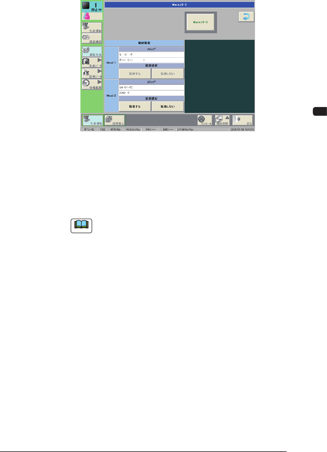 装着設定をしていないヘッドがあると、ウォームスタートを開始で