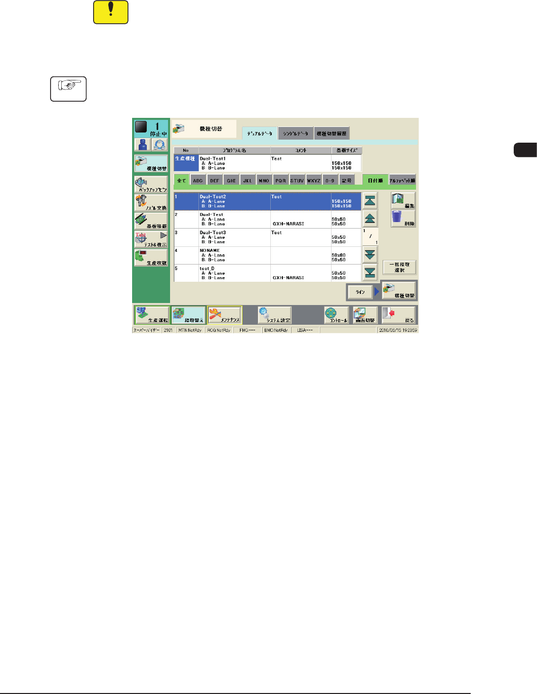 (1)[ 段取替え ]メニューの“機種切替”画面で、適当なパターンプロ