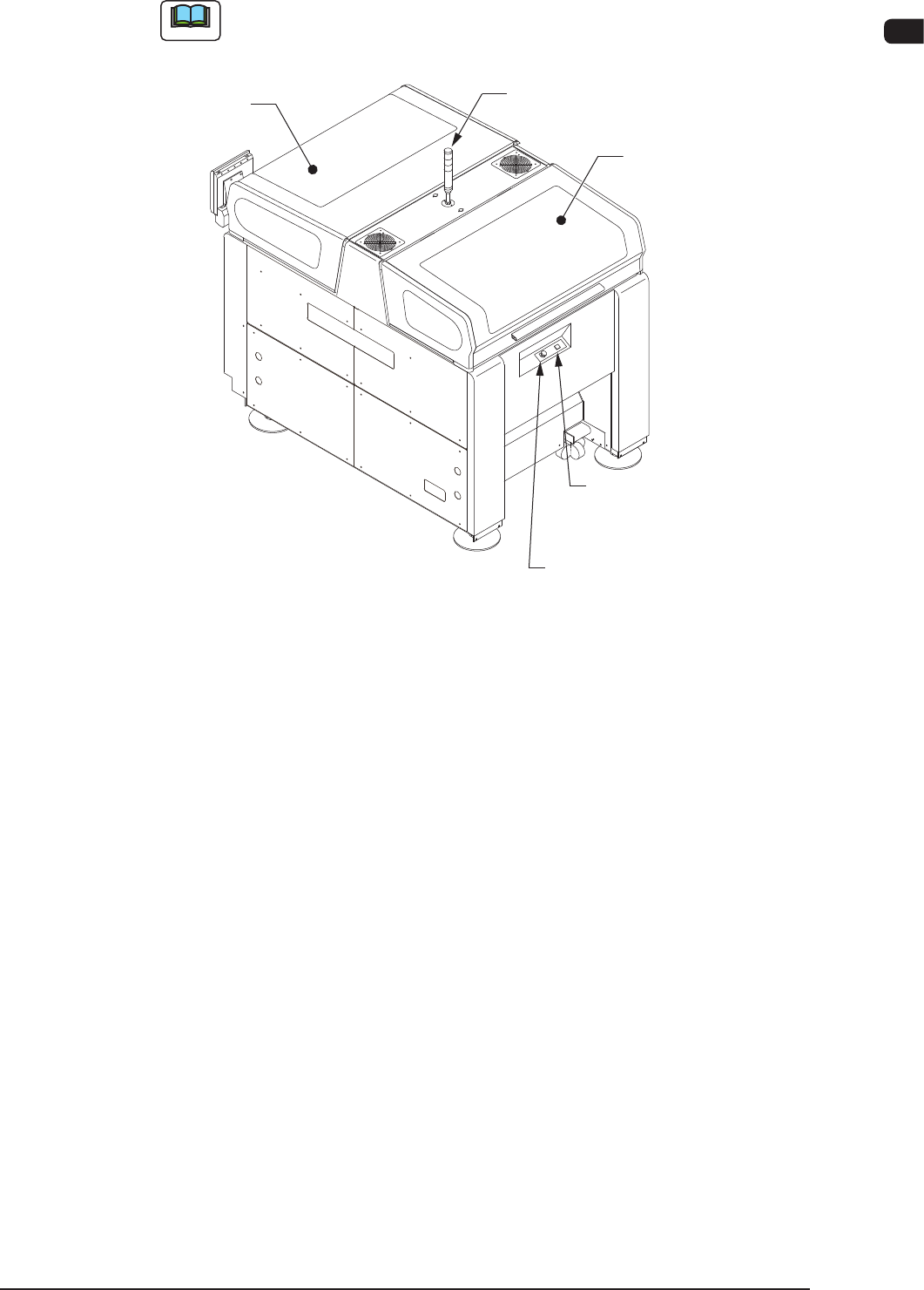 1OM-1609 1-5 1 章 2. 各部の名称と機能 ノート ()は項を示します。 タワー灯 (2.3.2) 透明カバー (2.2.3) カバーロックスイッチ ([カバーREADY]ボタン) (2.2.2.2) [非常停止] スイッチ (2.2.1) 透明カバー (2.2.3) 装置後面 F1A3 1 103-004