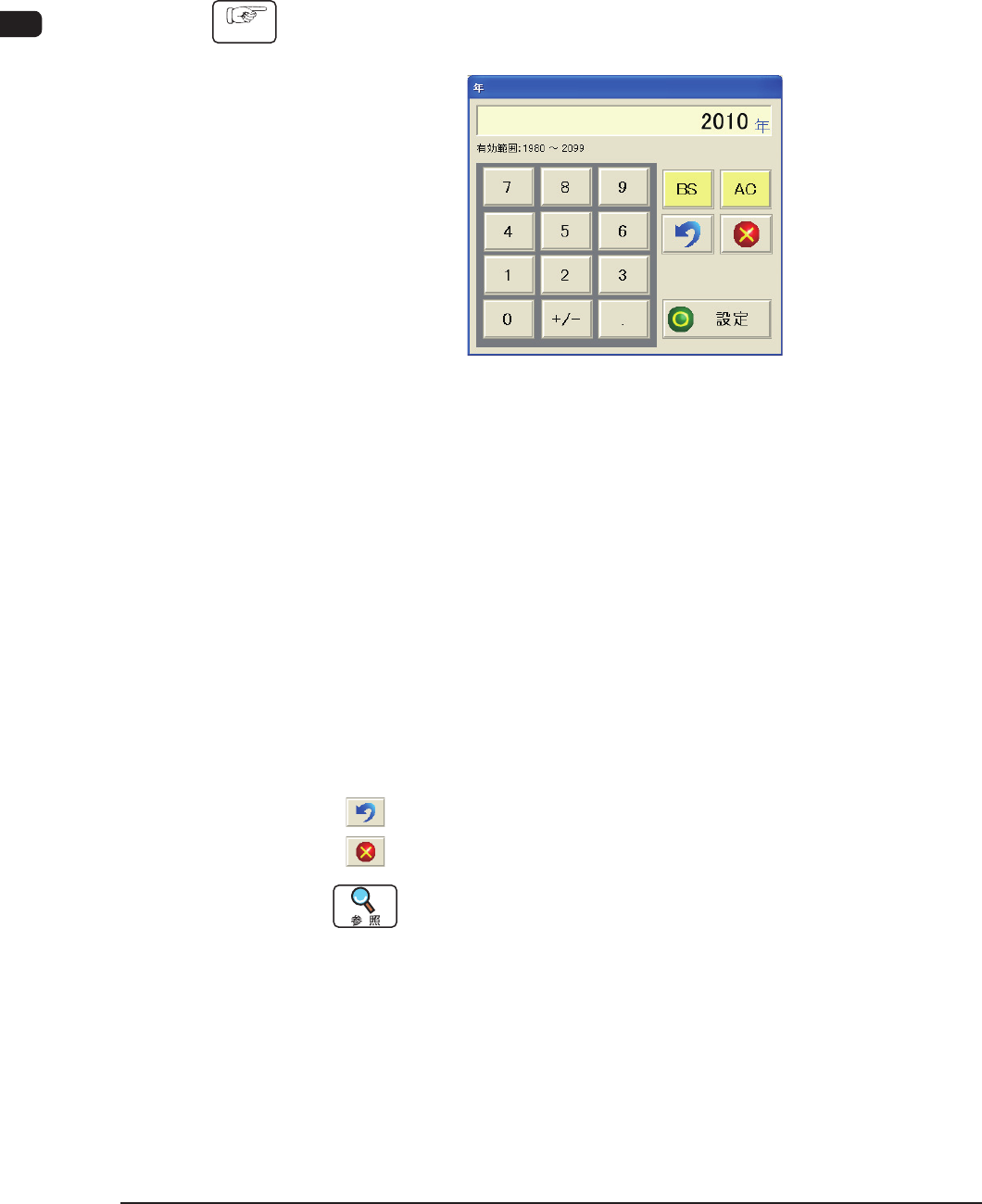 (1)操作画面で、数値データの入力が必要なボタンを押す。