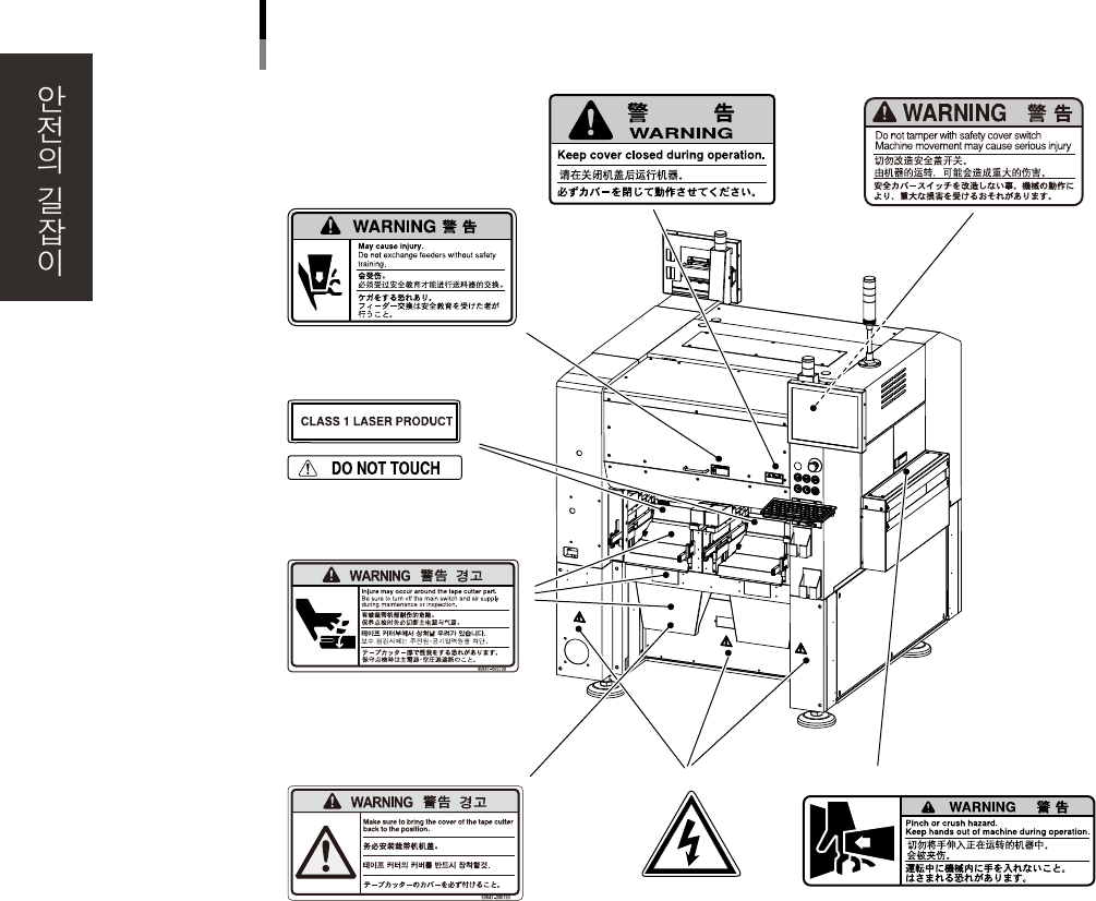 장비를 정확하고 안전하게 사용하기 위해서 , 본체 각부에 다음과 같이 경고표시 라벨이 부착되어 있습니다 .