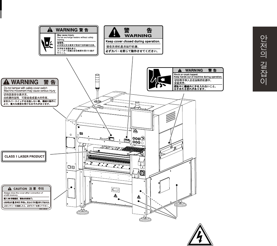 xx ■ 라벨 부 착 위치 경고표시 라벨 YS12뒷면 ■ 개폐커버 ■ 커터부 ■ 개폐커버 ■ 피더세트부 ■ 개폐커버내부 ■ 컨베이어 개구부 ■ 커터 덕트부 ■ 하부판넬부 912 01- L 5 - 0 0