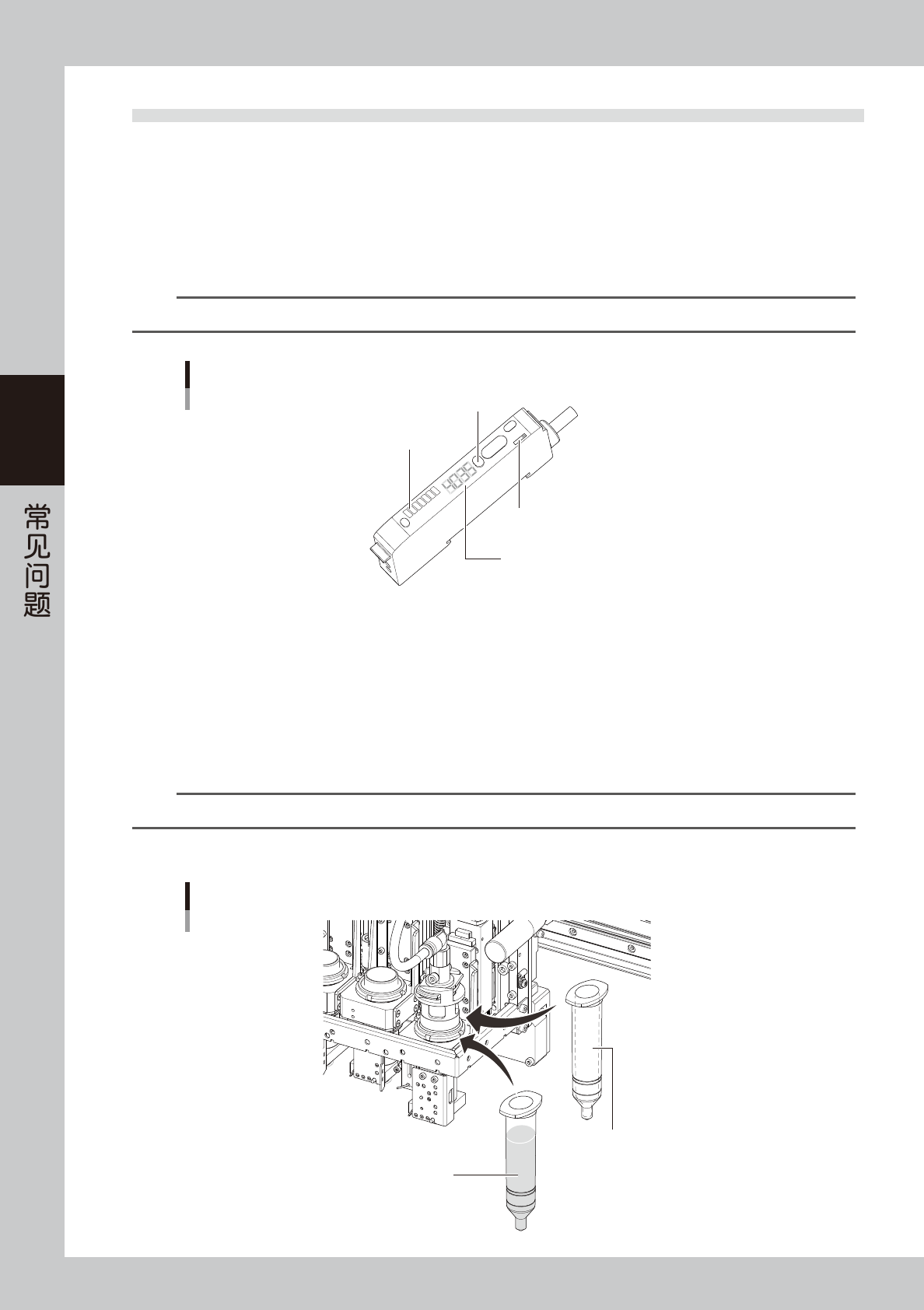 按照通常的调整方法调整的余胶检测传感器 ( 选配 ),若无法检出胶筒内的余胶时,可以使用指定角度检测余胶。